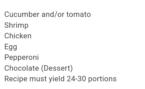 Hors d’oeuvres are light, really small foods that are eaten before dinner. After being put into teams of 3, we had to choose an ingredient from the ingredient list and make an hors d’oeuvre with it.
