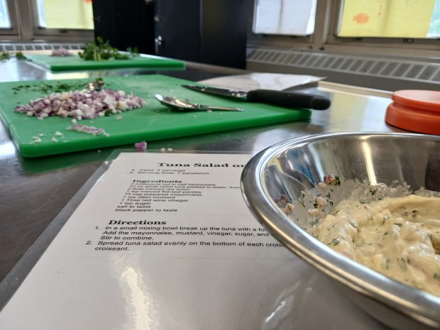 One of the things we made for our sandwich unit were Tuna Salad sandwiches (which were ginormous and delicious).